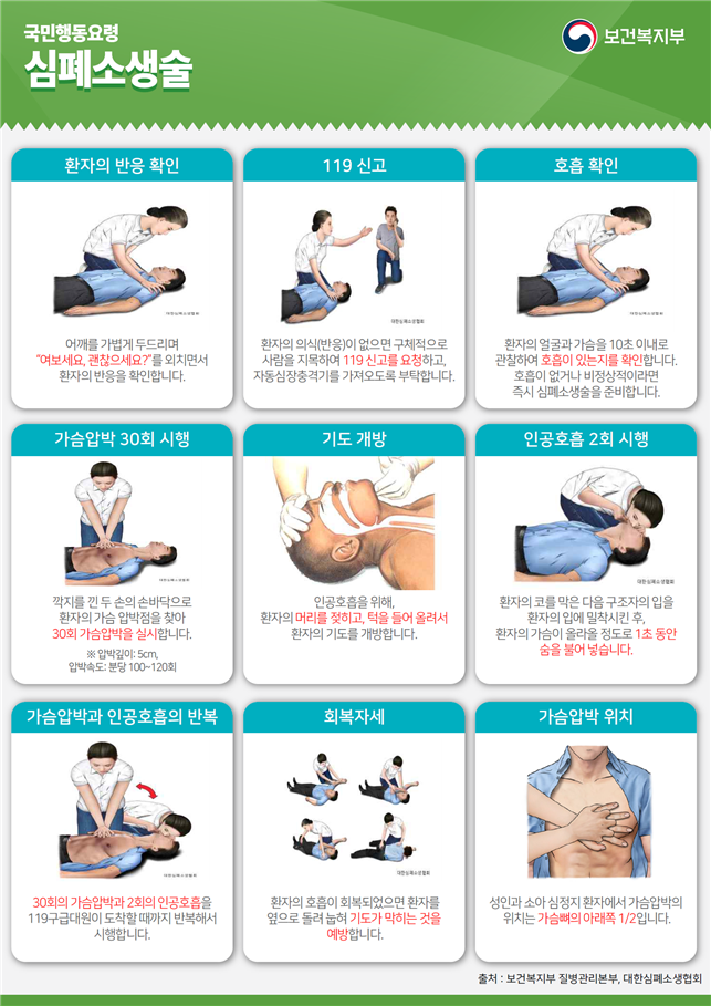 심폐소생술 국민행동요령 [출처: 보건복지부]