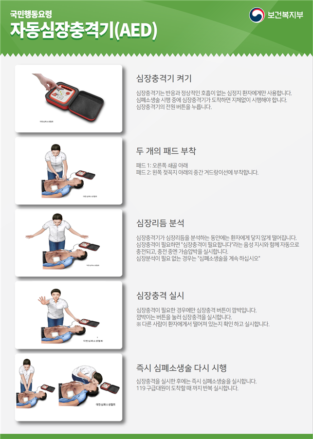 자동심장충격기 국민행동요령 [출처: 보건복지부]