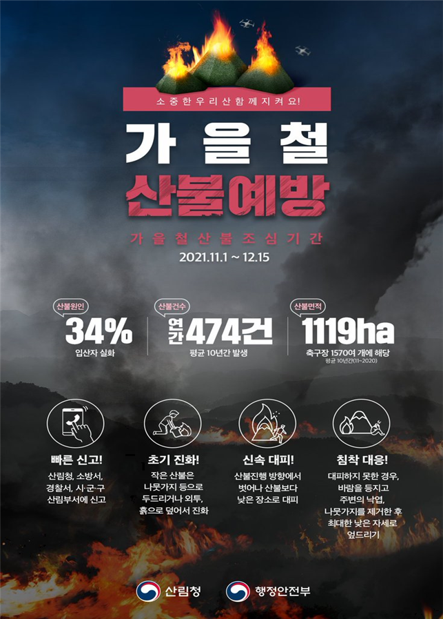 산 불 예 방 | ○ 산에 갈 땐 불씨는 두고 가세요~ ⇒ 산에 갈 때는 성냥·라이터 등 인화물질 소지 금지, 산림 및 산림 연접 지역에서 화기 취급 주의 |