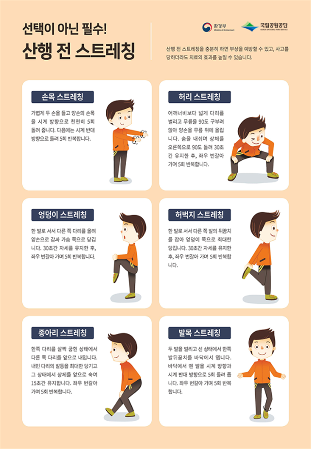 ⇒ 충분한 준비운동과 휴식, 응급처치방법을 숙지하세요
