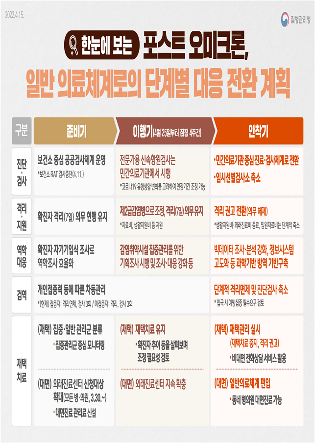 코로나19, 일반 의료체계로의 전환 [출처: 질병관리청]