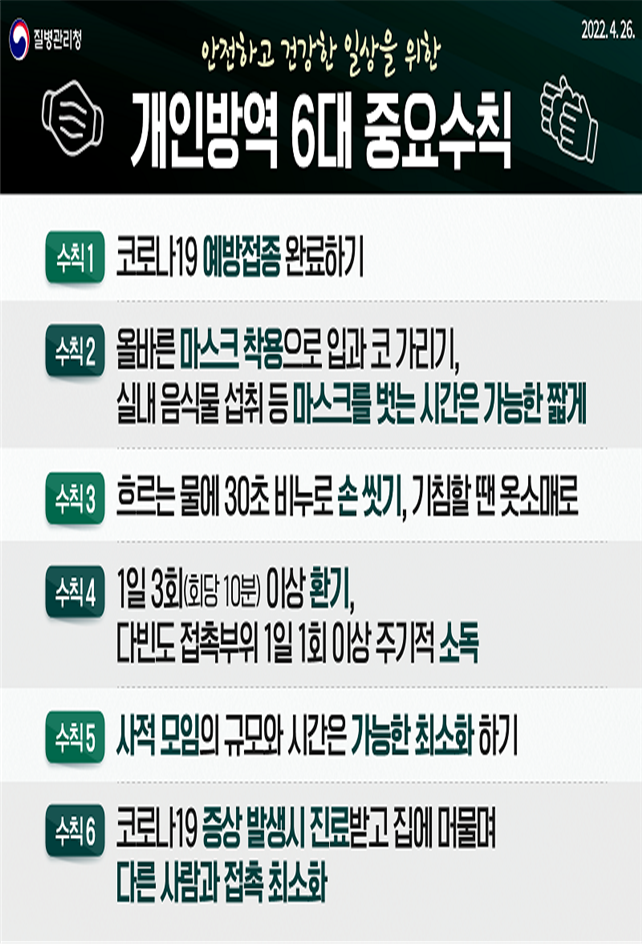 ⇒ 손 씻기, 환기・소독 등 일상 속 감염차단을 위한 개인 생활 방역수칙을 철저히 준수합시다!