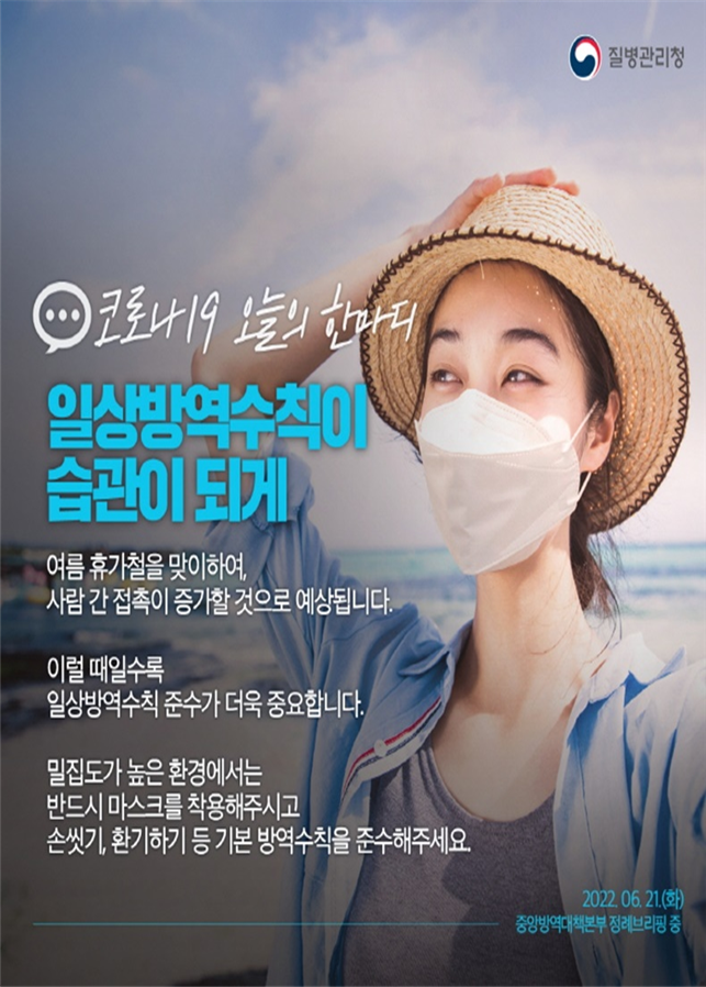 생활방역 수칙 준수로 건강한 여름휴가 보내세요! ⇒ 한적한 곳에서 소규모로 건강하고 안전하게 여름휴가 보내기 |