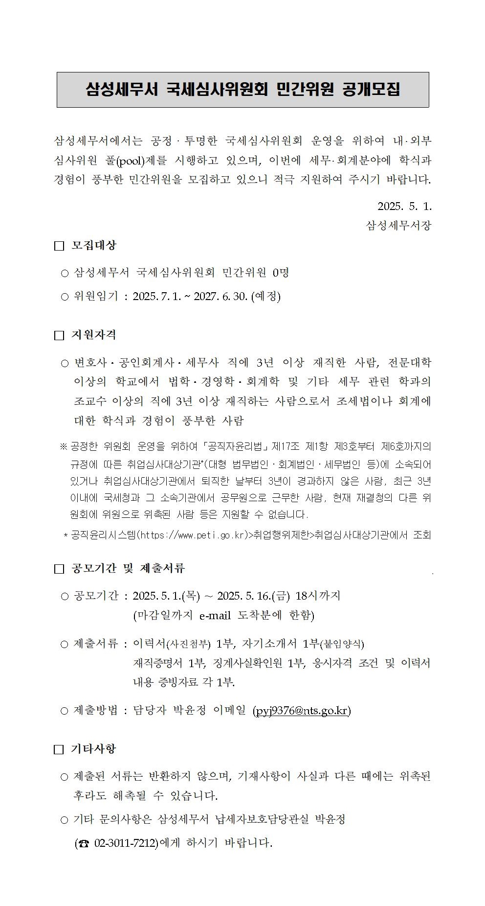 삼성세무서 국세심사위원회 민간위원 공개모집 공고문.pdf
