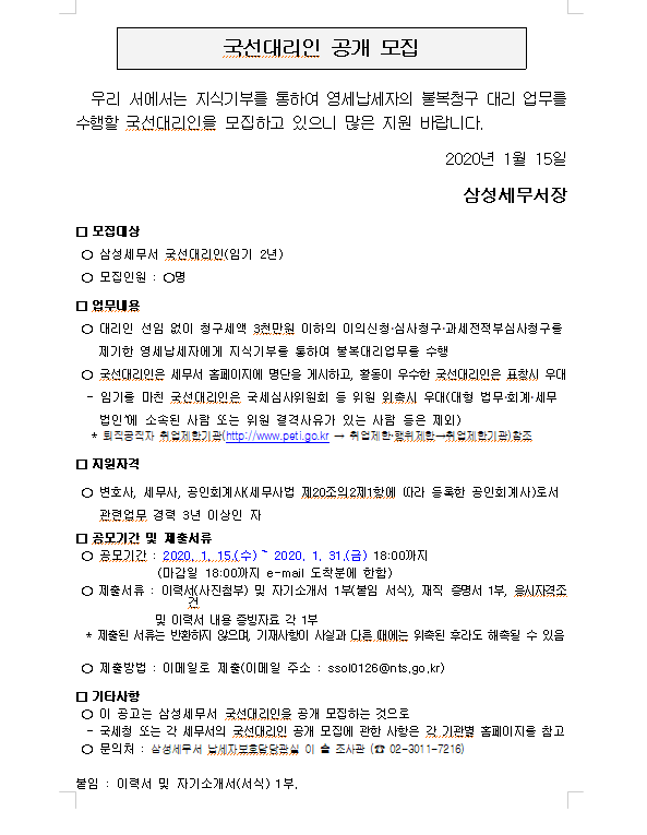 제4기 국선대리인 공개 모집