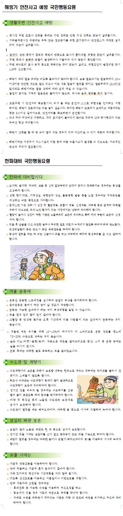 해빙기 안전사고 예방 및 한파대비 국민행동요령