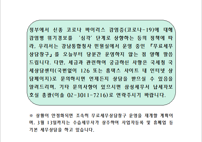 2020년 3월 「무료세무상담창구」상담창구 운영 안내