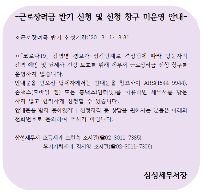 근로장려금 반기 신청 및 신청 창구 미운영 안내