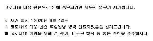 삼성세무서 업무 재개일시 공지