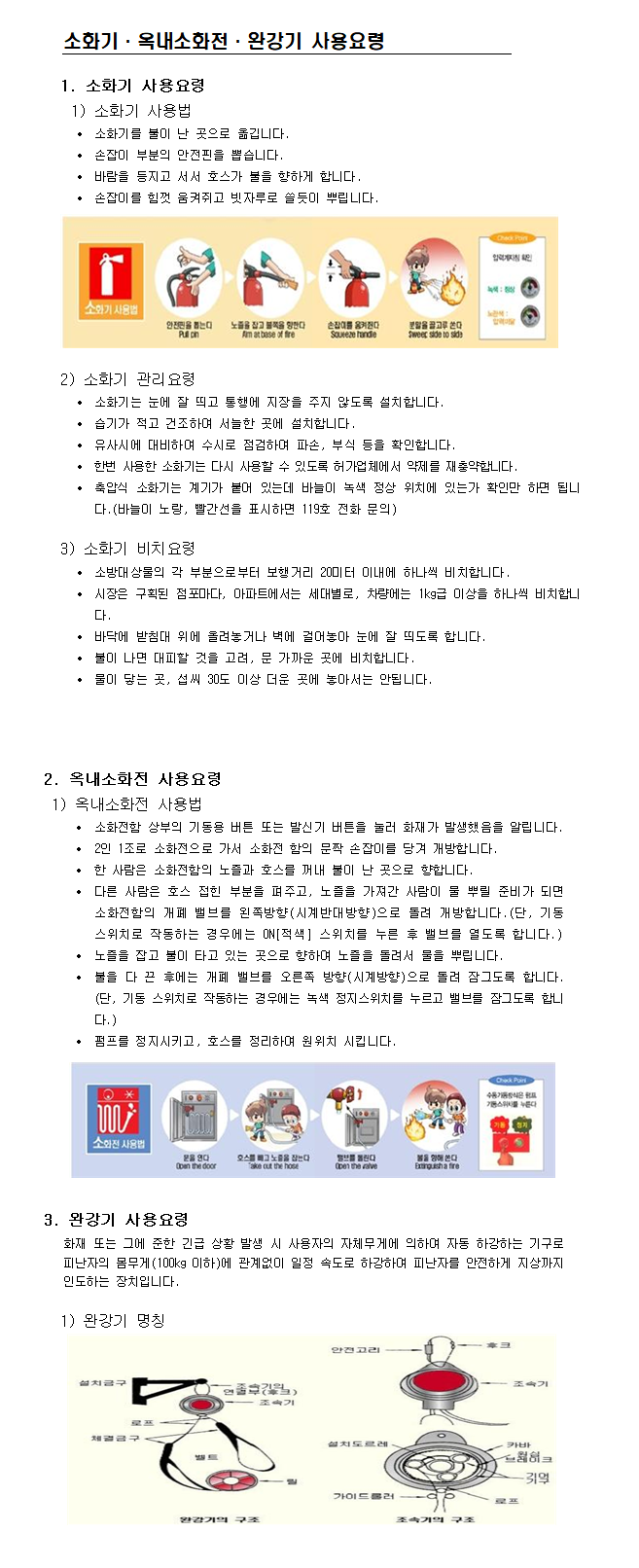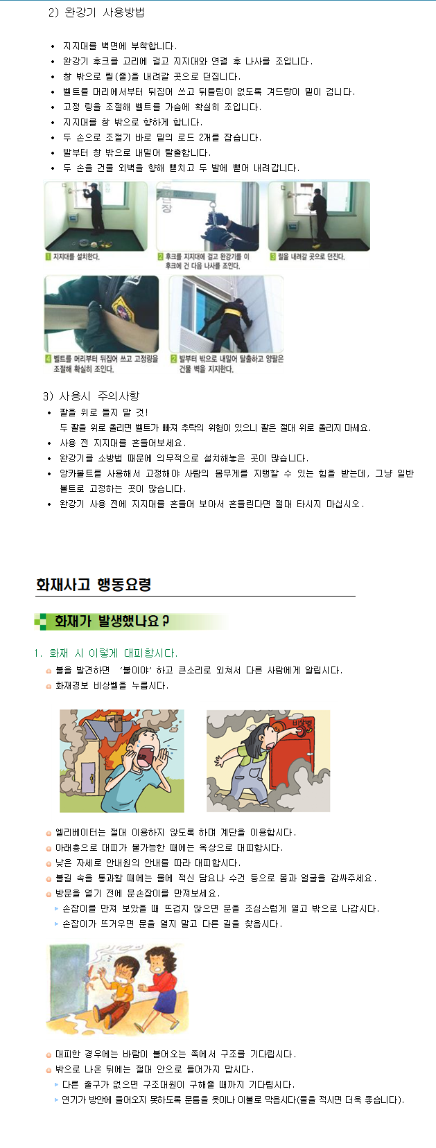 소화기 등 사용요령, 화재사고 행동요령, 생활 속 거리두기 행동수칙