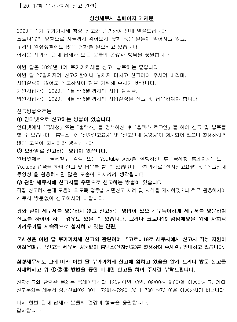 '20.1기 부가가치세 확정신고 안내드립니다.