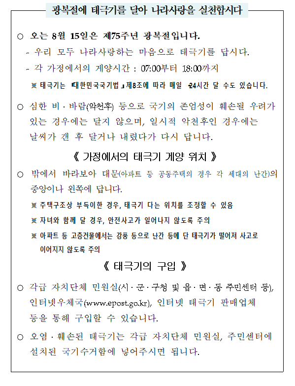제75주년 광복절『나라사랑 태극기 달기 운동』