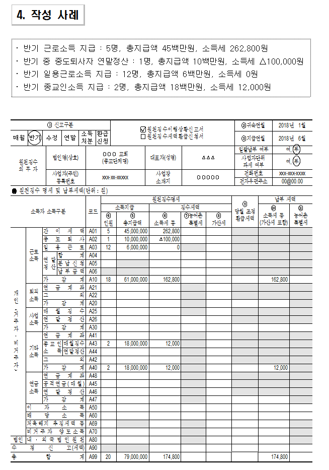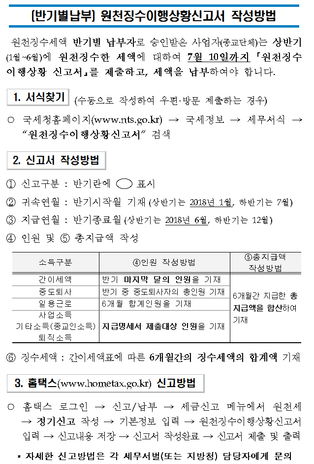 종교인소득 원천세 반기별납부자의 신고방법 안내