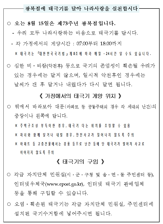 제73주년 광복절 「나라사랑 태극기 달기」