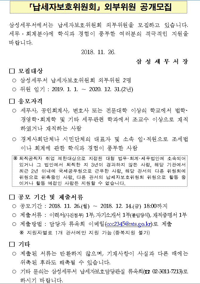2018년 12월 「무료세무상담창구」 상담일정 안내