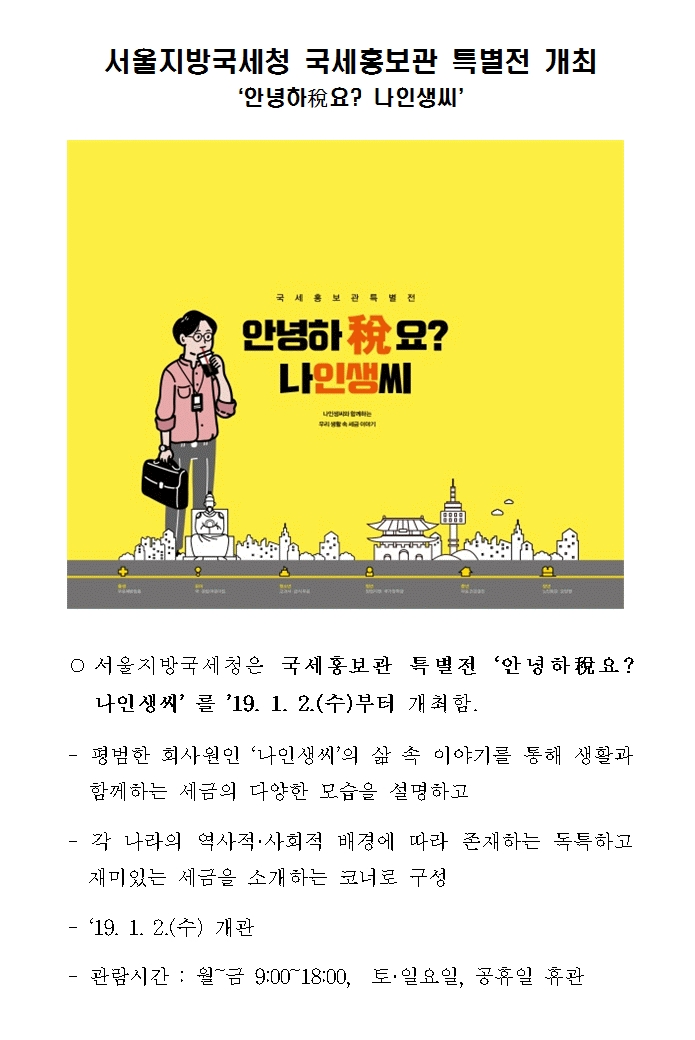 서울지방국세청 국세홍보관 특별전 '안녕하稅요? 나인생씨' 개최
