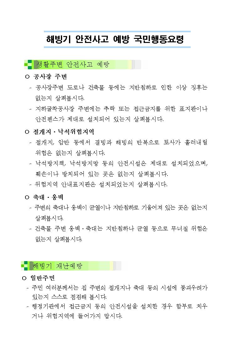 해빙기 안전사고 예방 국민행동요령