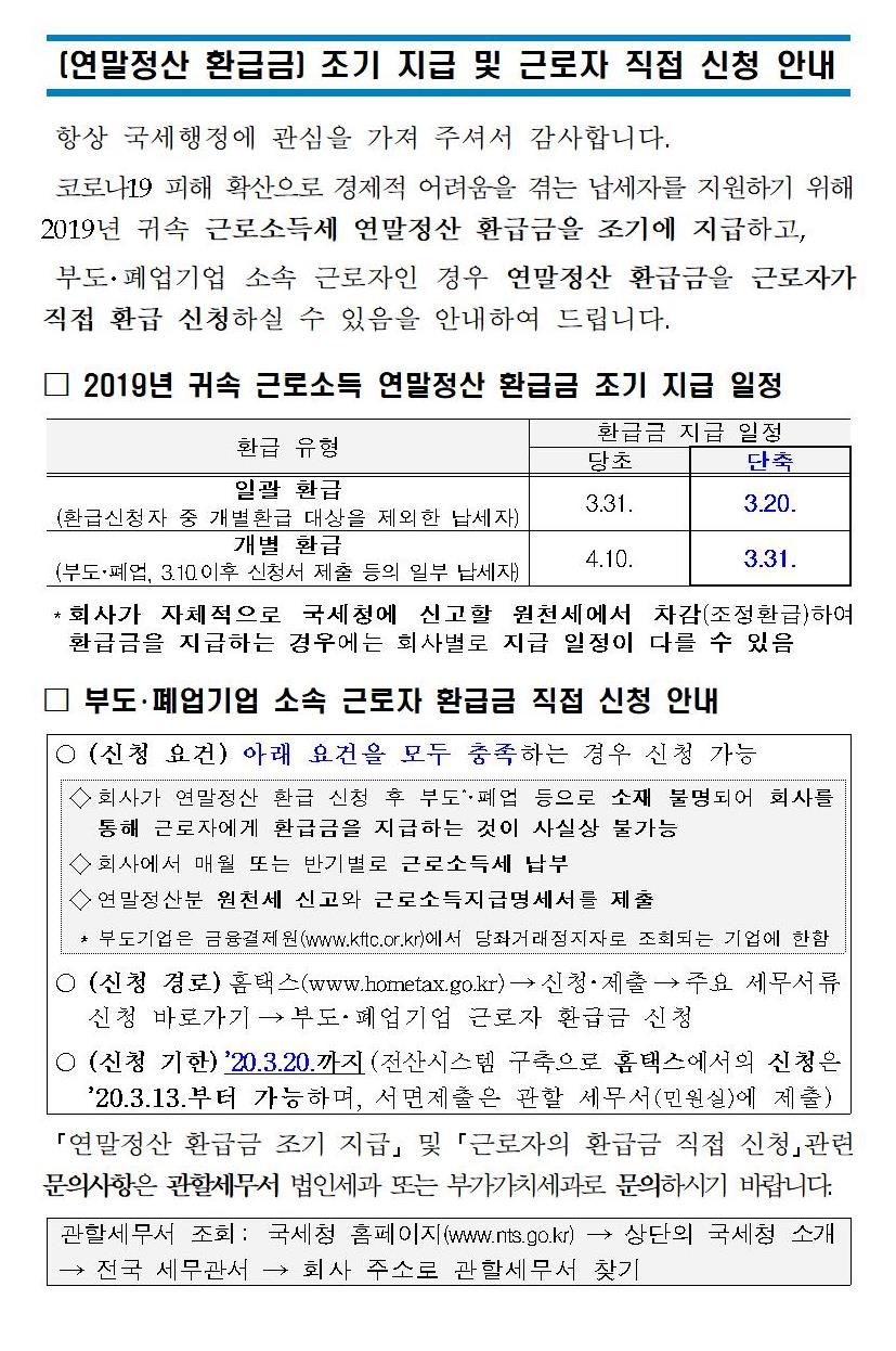[연말정산 환급금] 조기 지급 및 근로자 직접 신청 안내