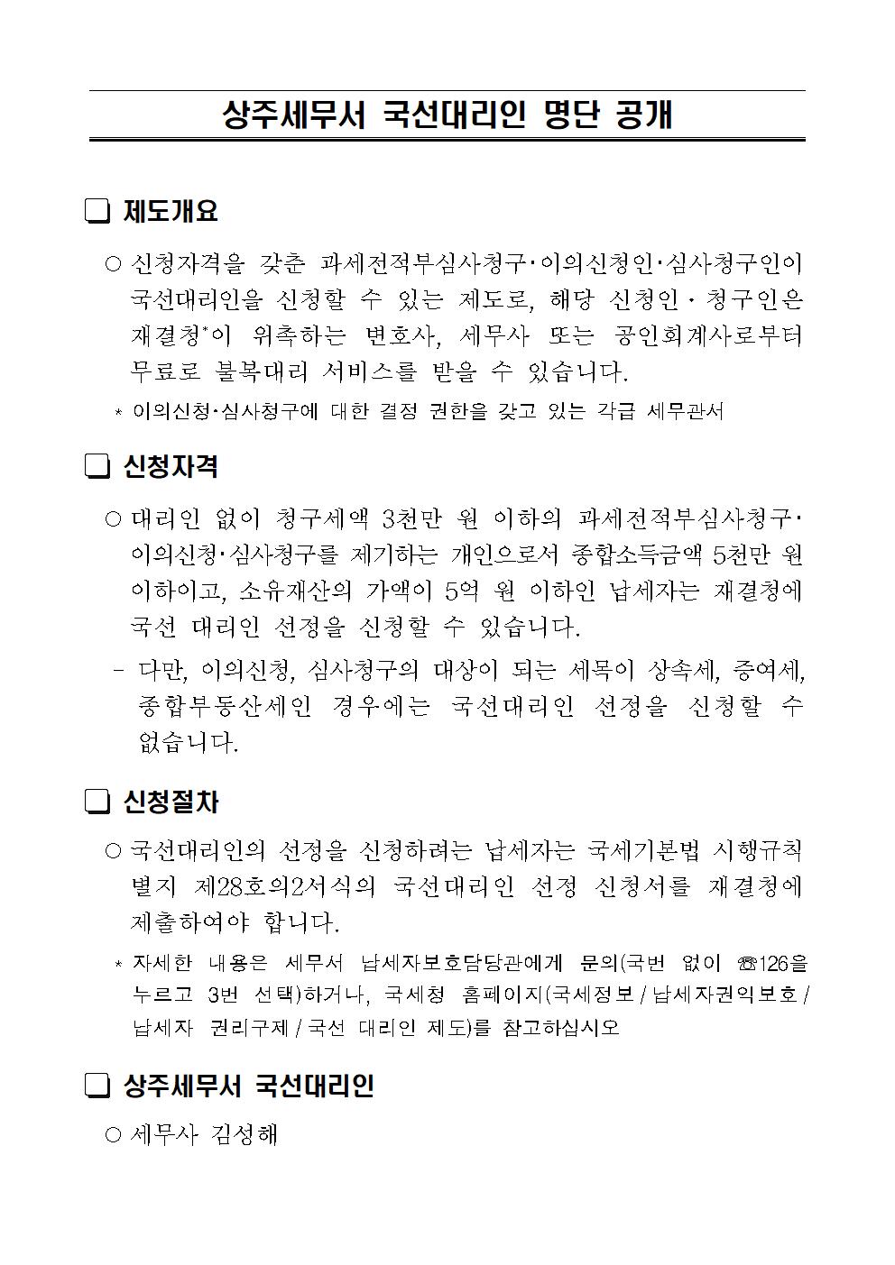 상주세무서 국선대리인 명단 공개