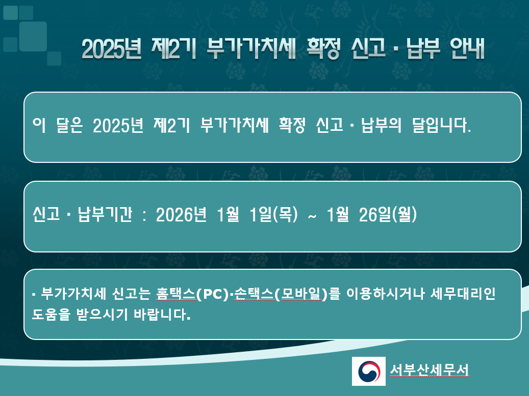 2025년 제2기 부가가치세 확정 신고·납부 안내