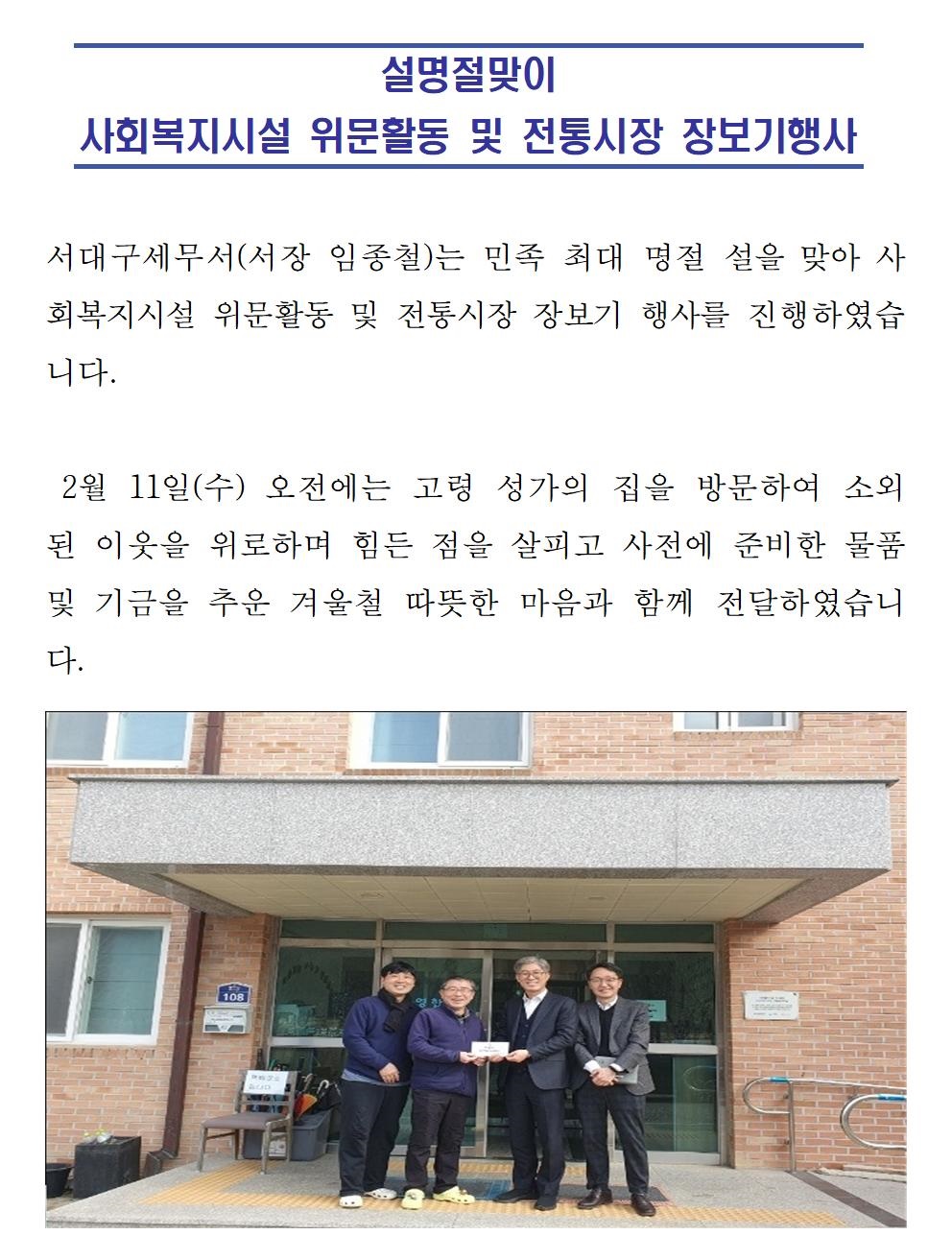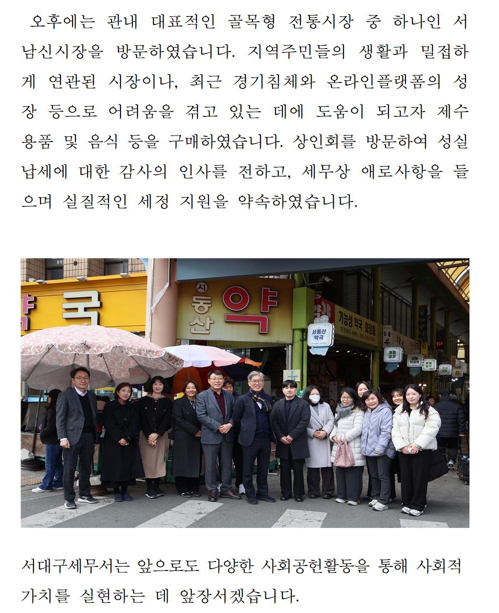 서대구 세무서, 설맞이 사회복지시설 위문활동 및 전통시장 장보기 행사 실시