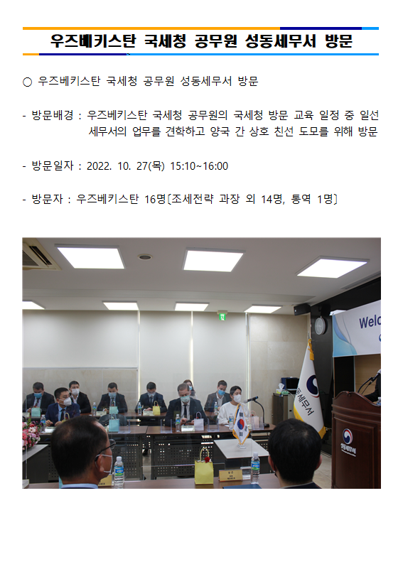 우즈베키스탄 국세청 공무원 성동세무서 방문