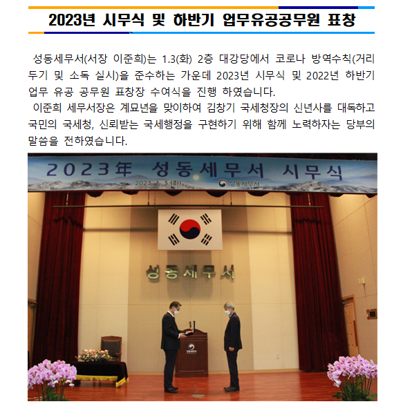 2023년 시무식 및 2022년 하반기 업무유공공무원 표창장 수여식