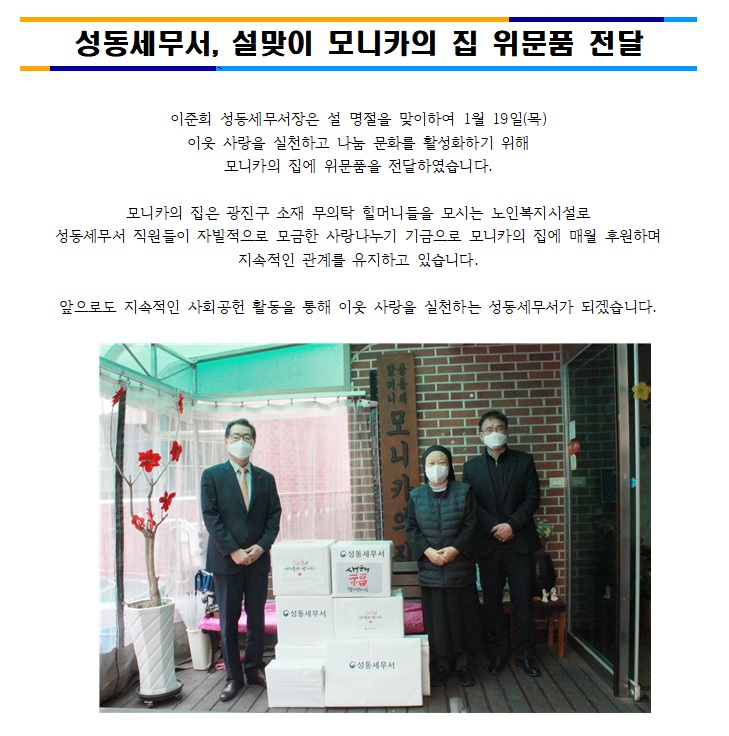 성동세무서, 설맞이 모니카의 집 위문품 전달