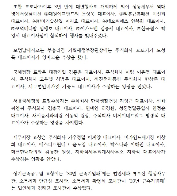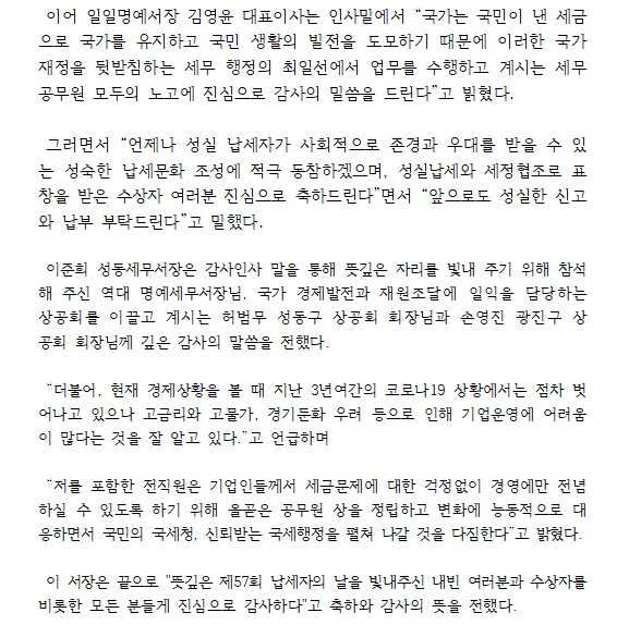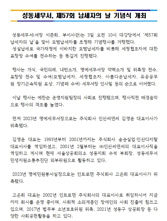 성동세무서, 제57회 납세자의 날 기념식 개최