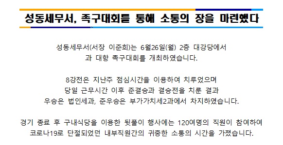 성동세무서, 족구대회를 통해 소통의 장을 마련했다