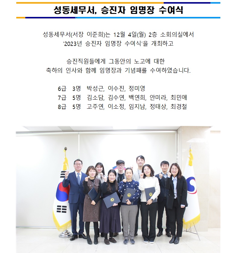 성동세무서, 승진자 임명장 수여식