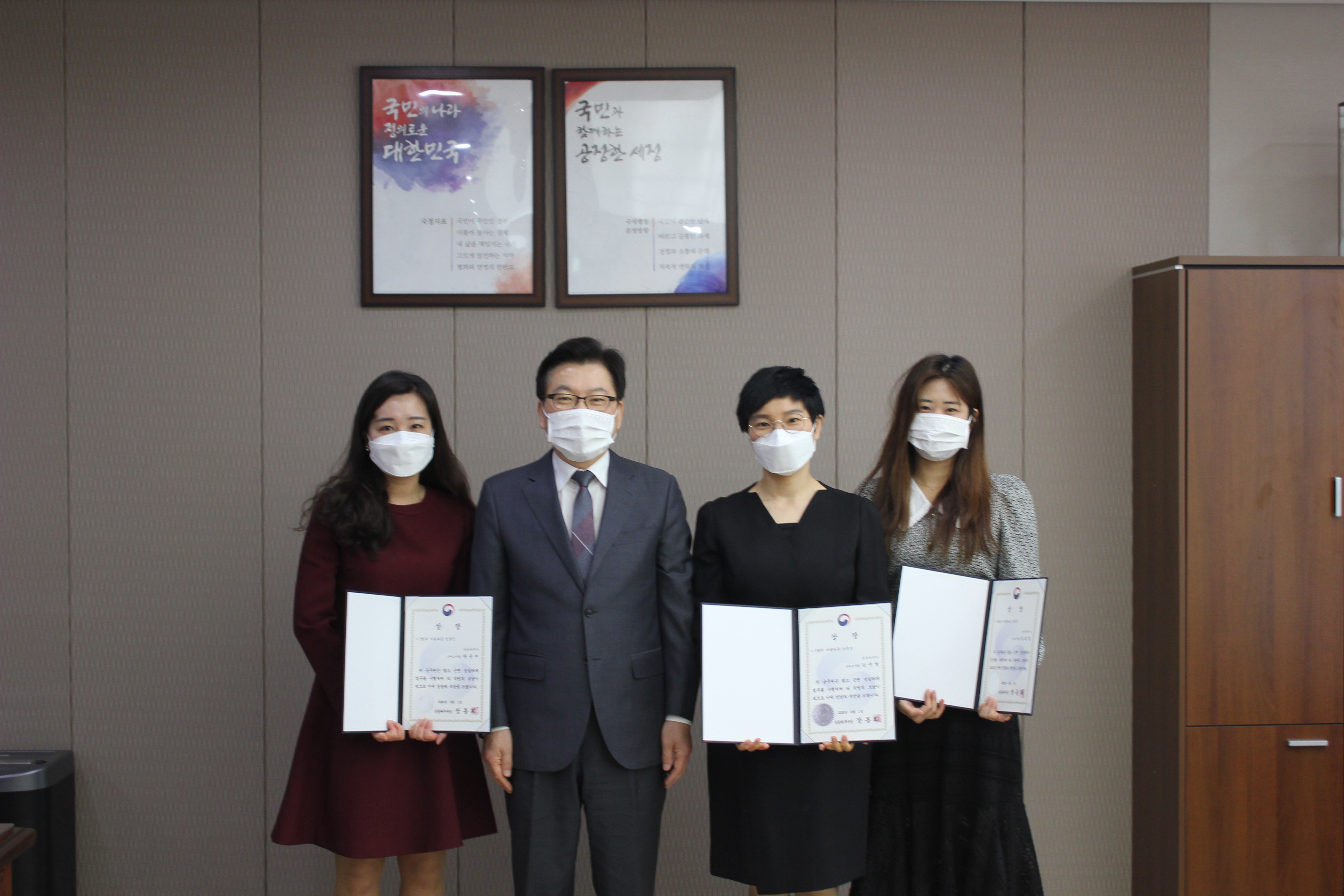 성동세무서(서장 장동희)는 4.1.(수)에 이달(3월)의 「아름다운 성동인」을 선정하여 표창 수여식을 치렀습니다. 장동희 서장은 선정된 직원들에 표창장과 부상(화분)을 수여하시고 직원들의 노고를 치하하였습니다. - 수상 명단 - 김주영 조사관(재산세1과) 왕윤미 조사관(법인세과) 김효림 조사관(체납징세과)