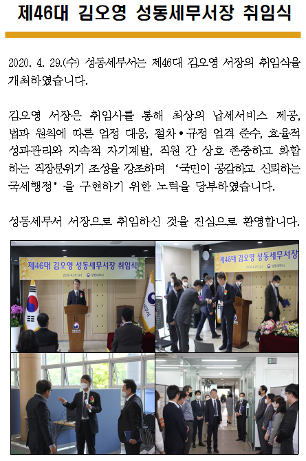 제46대 김오영 성동세무서장 취임식