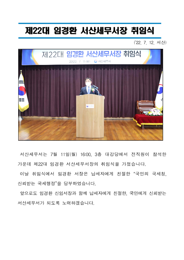 제22대 임경환 서산세무서장 취임식