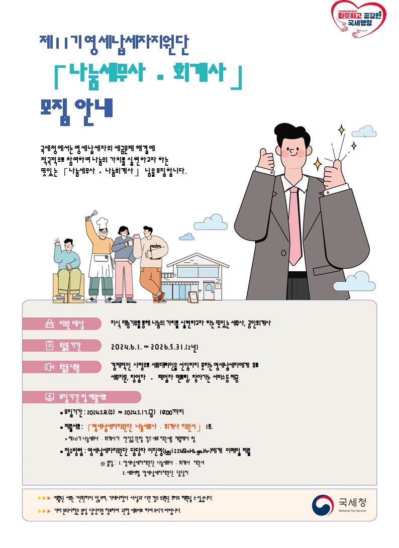 제11기 영세납세자지원단 나눔세무·회계사 모집안내