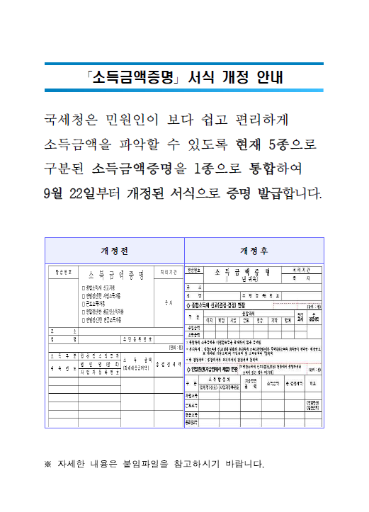 『소득금액증명 』 서식 개정 안내
