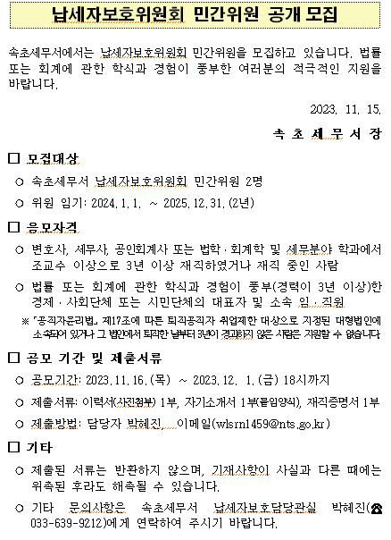 2023년 납세자보호위원회 민간위원 공개모집
