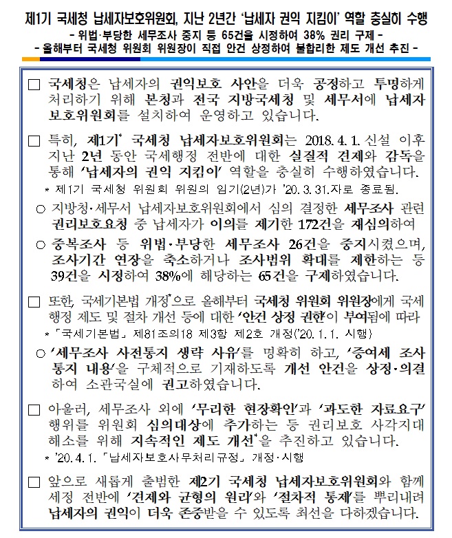 제1기 국세청 납세자보호위원회_지난 2년간 _납세자 권익 지킴이_ 역할 충실히.hwp