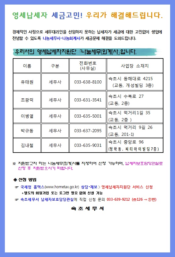 속초세무서 영세납세자지원단 나눔세무사 명단게시