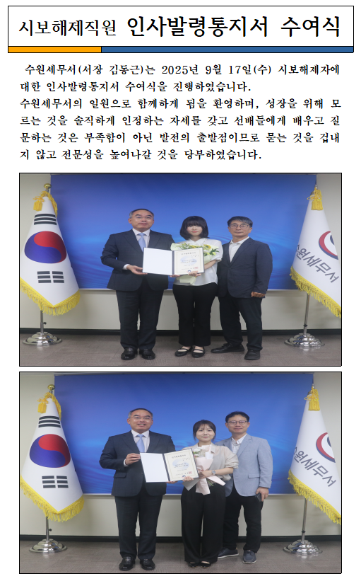 시보해제 직원 임명장 수여식