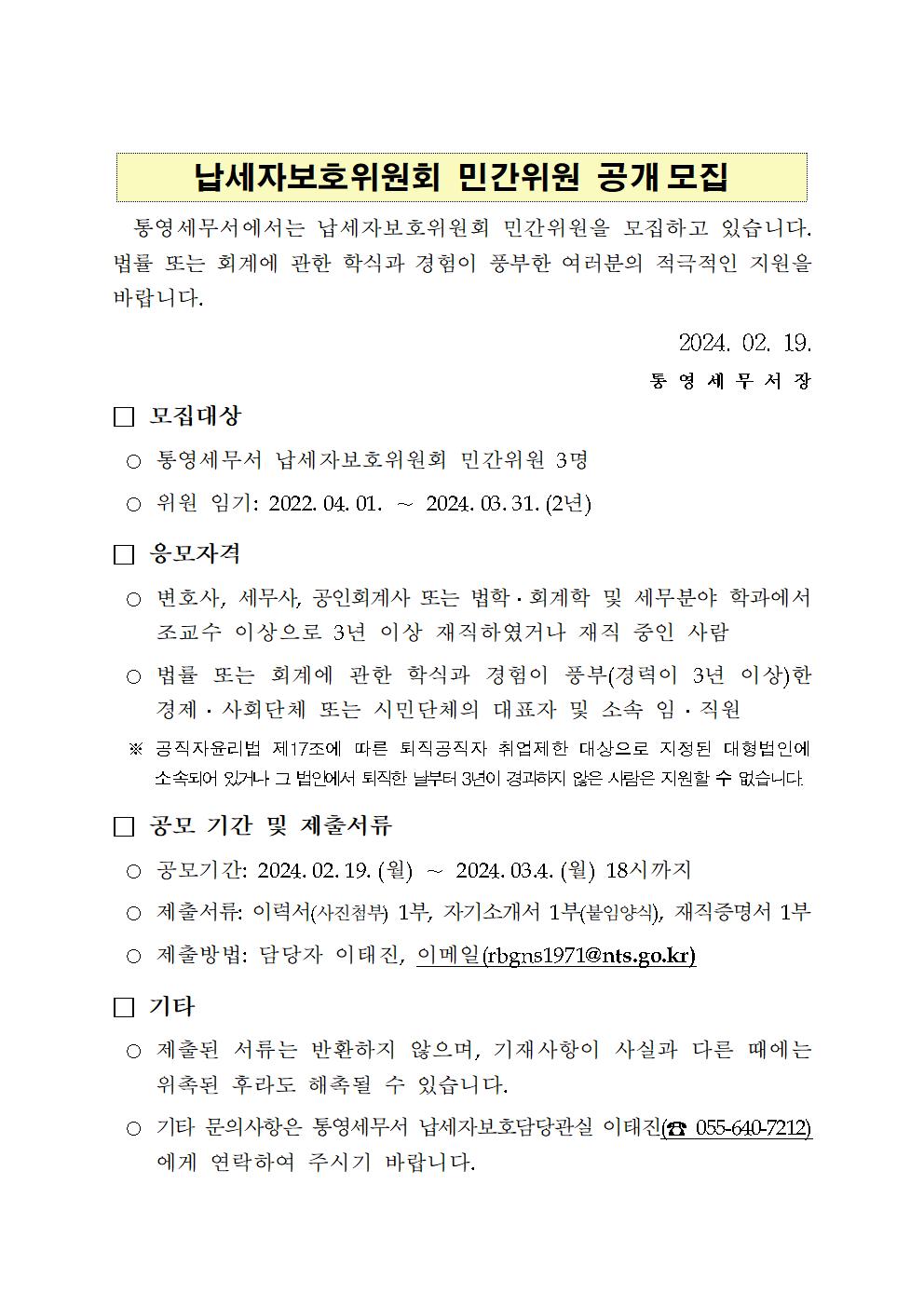부산지방국세청 청년인턴 채용 서류전형 합격자 공고