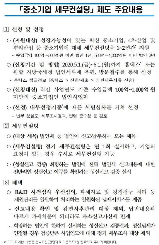 「중소기업 세무컨설팅」제도 안내