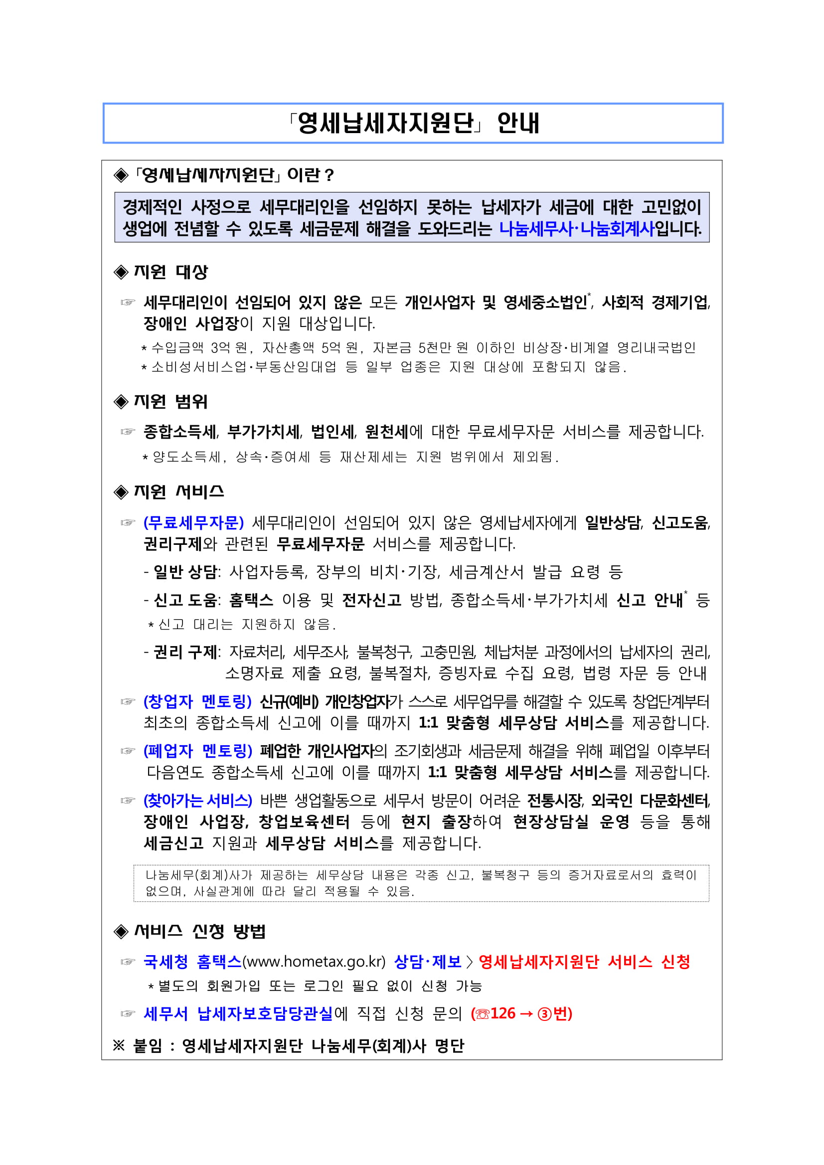 영세납세지원단 안내 및 나눔세무·회계사 소개