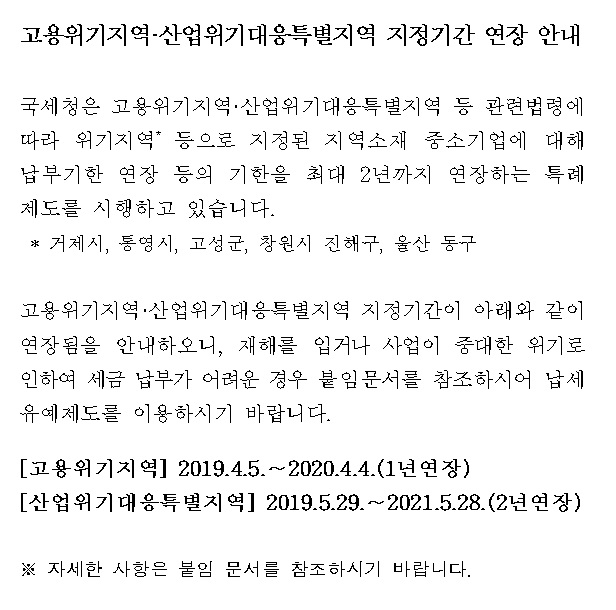 고용위기지역 · 산업위기대응특별지역 지정기간 연장 안내