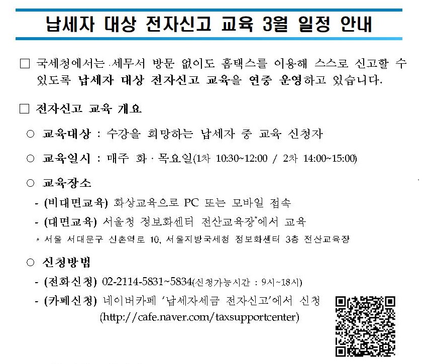 납세자 대상 전자신고 교육 3월 일정 안내.hwp