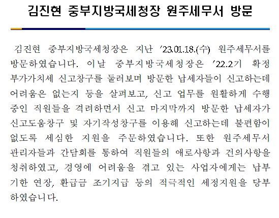 원주세무서, 2023년 설 명절 맞아 사회공헌활동 실시
