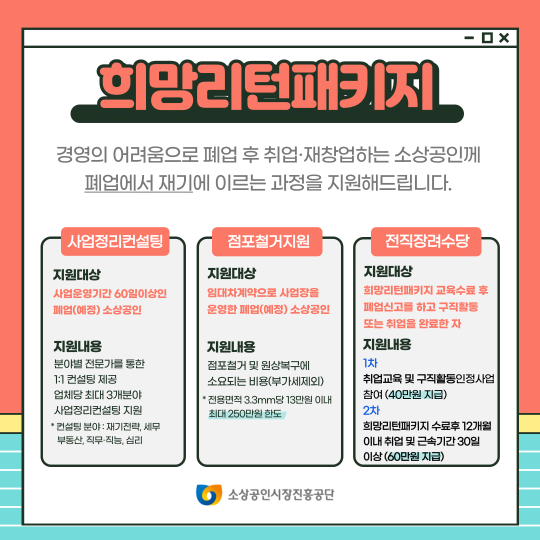 자세한 내용은 해당 홈페이지(https://www.sbiz.or.kr)를 통해 문의하시기 바랍니다.