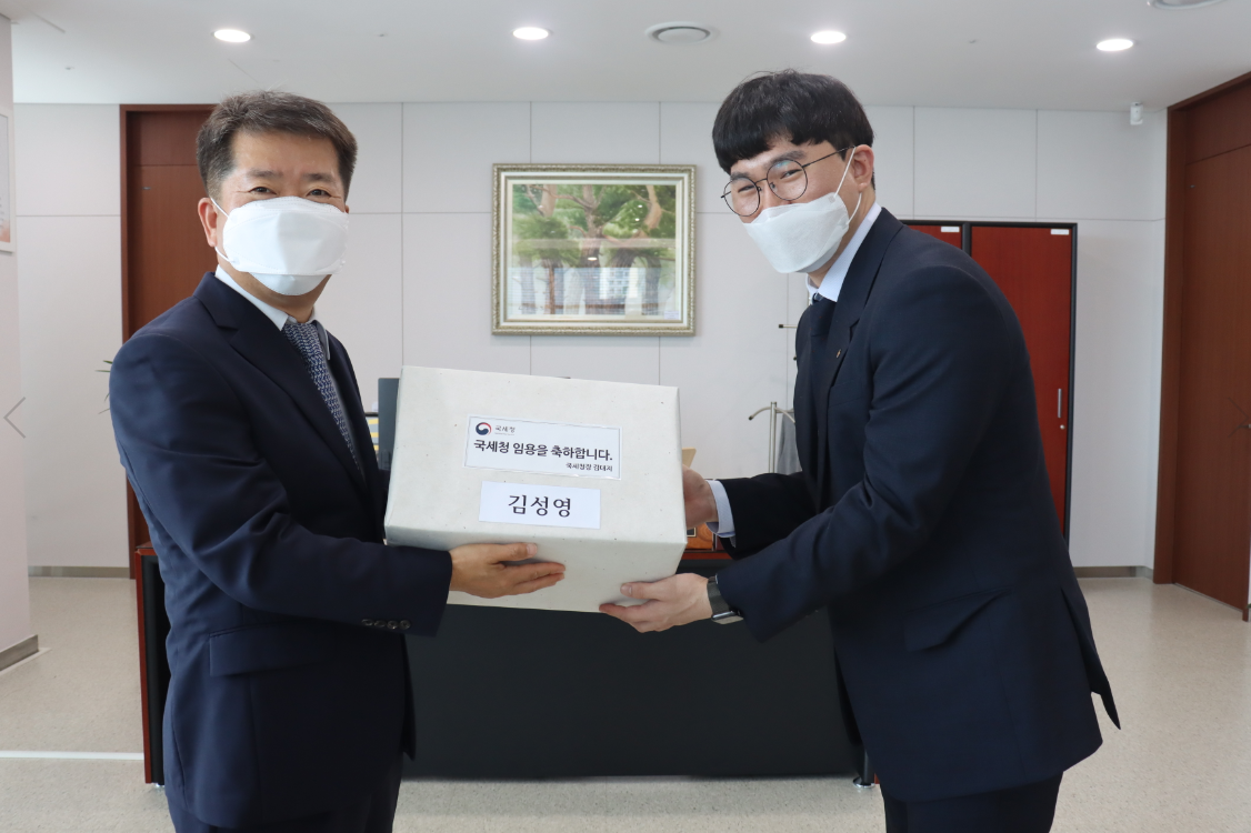 2021.6.28.(월) 연수세무서(서장 강백근)는 서장실에서 신규 국세공무원(김성영 조사관)에 대한 환영 행사를 진행하였습니다.