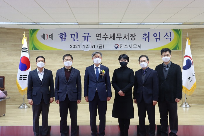 2021년 12월 31일 연수세무서 직원들은 새로 취임하신 함민규 서장님의 취임식을 진행하였습니다.