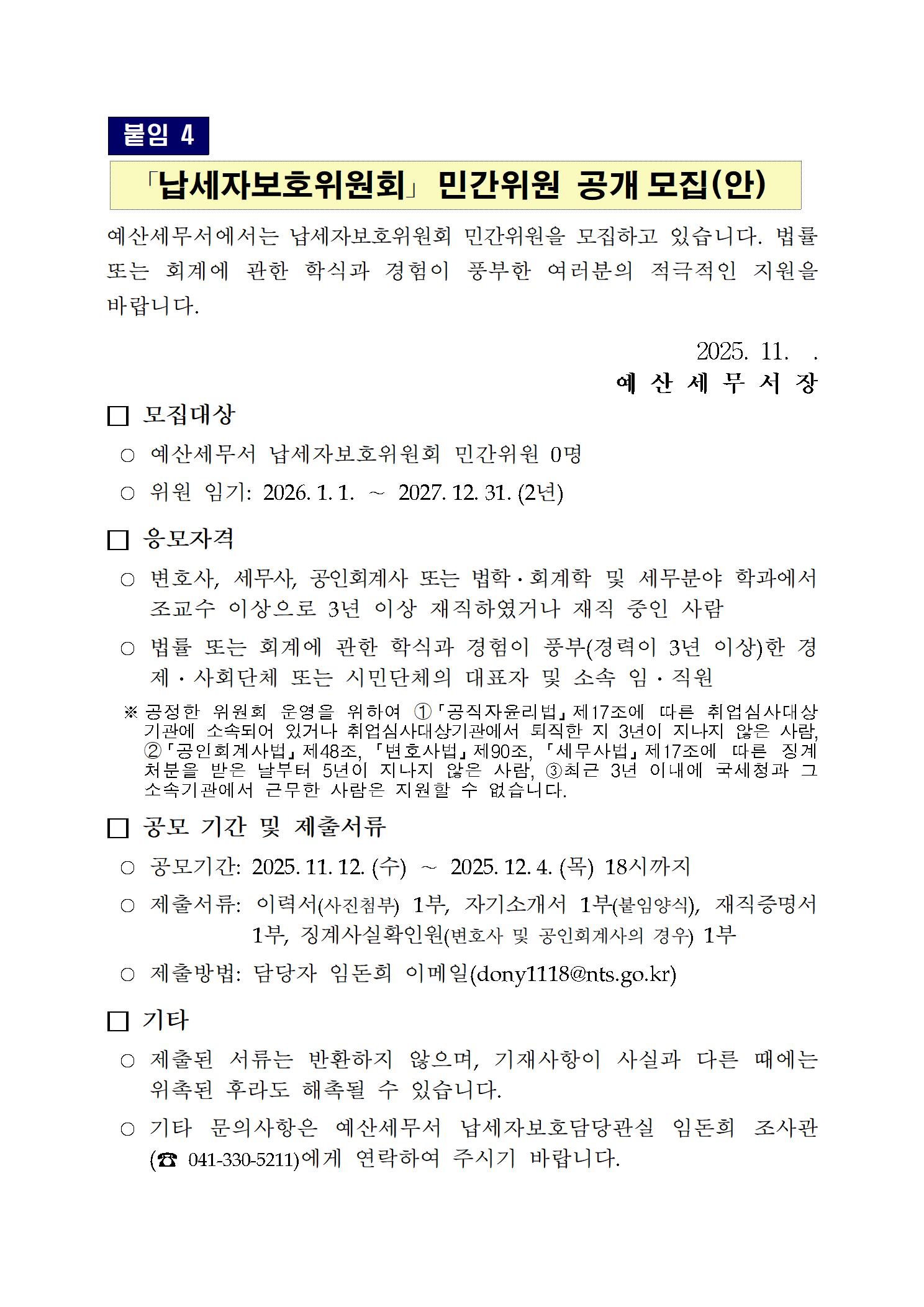 납세자보호위원회 민간위원 공개 모집